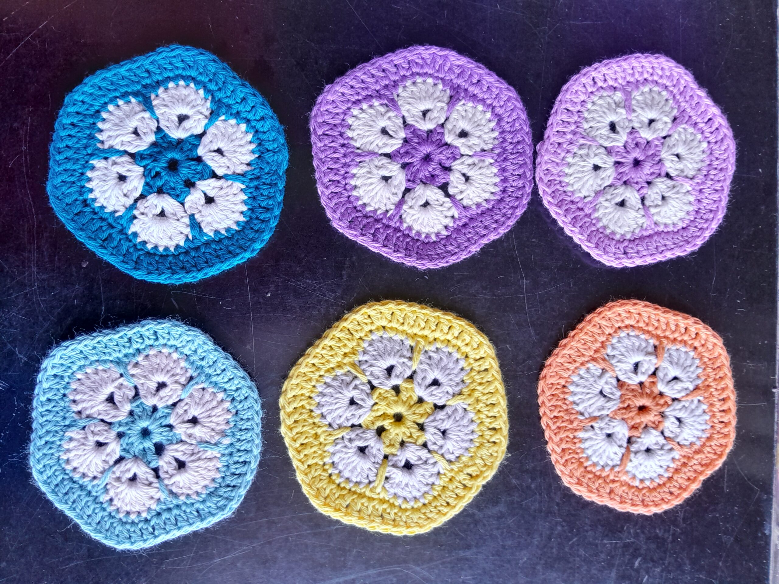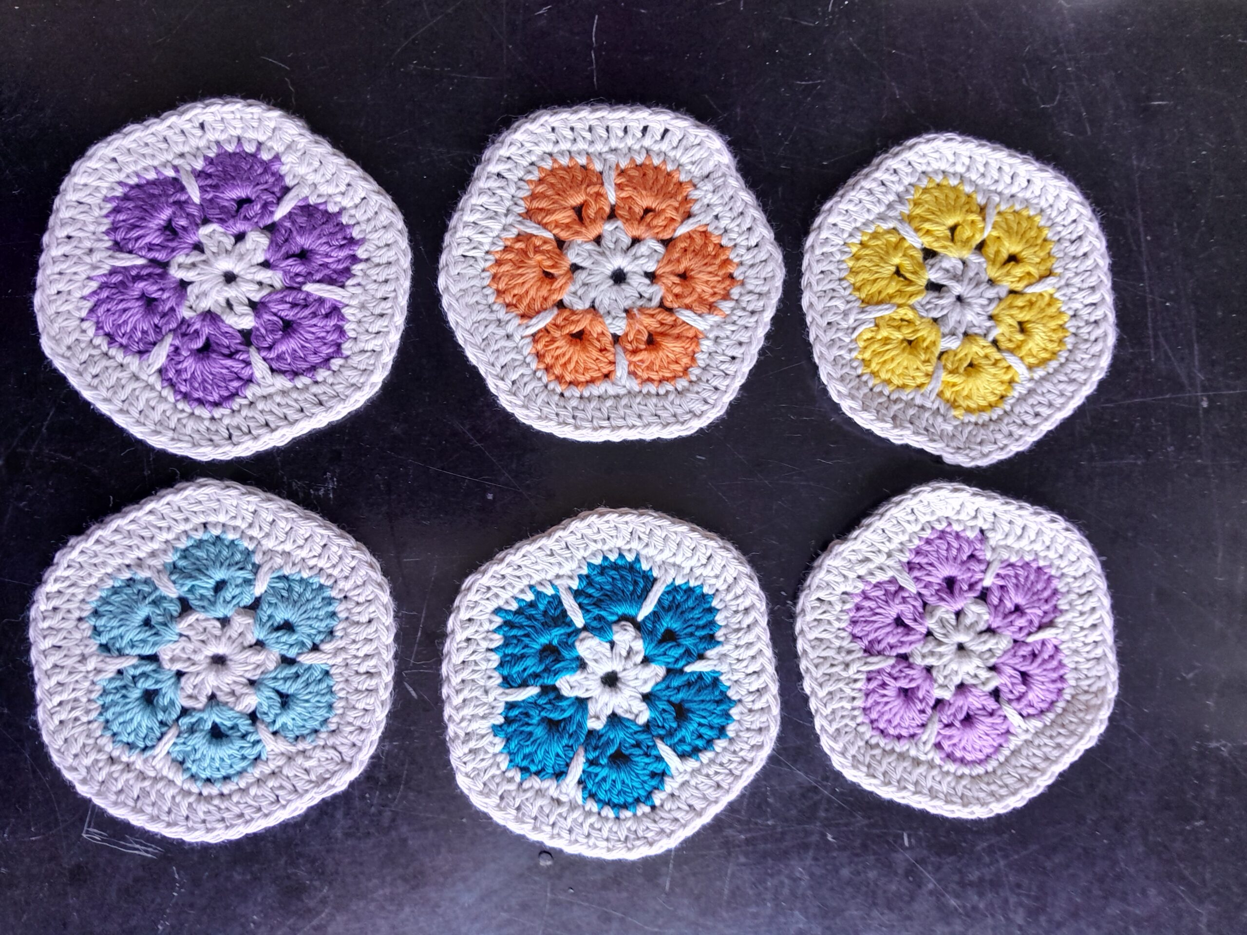 Dessous de verre en coton réutilisable. Vendus par lots de 4 ou 6, plusieurs coloris à combiner selon vos envies…